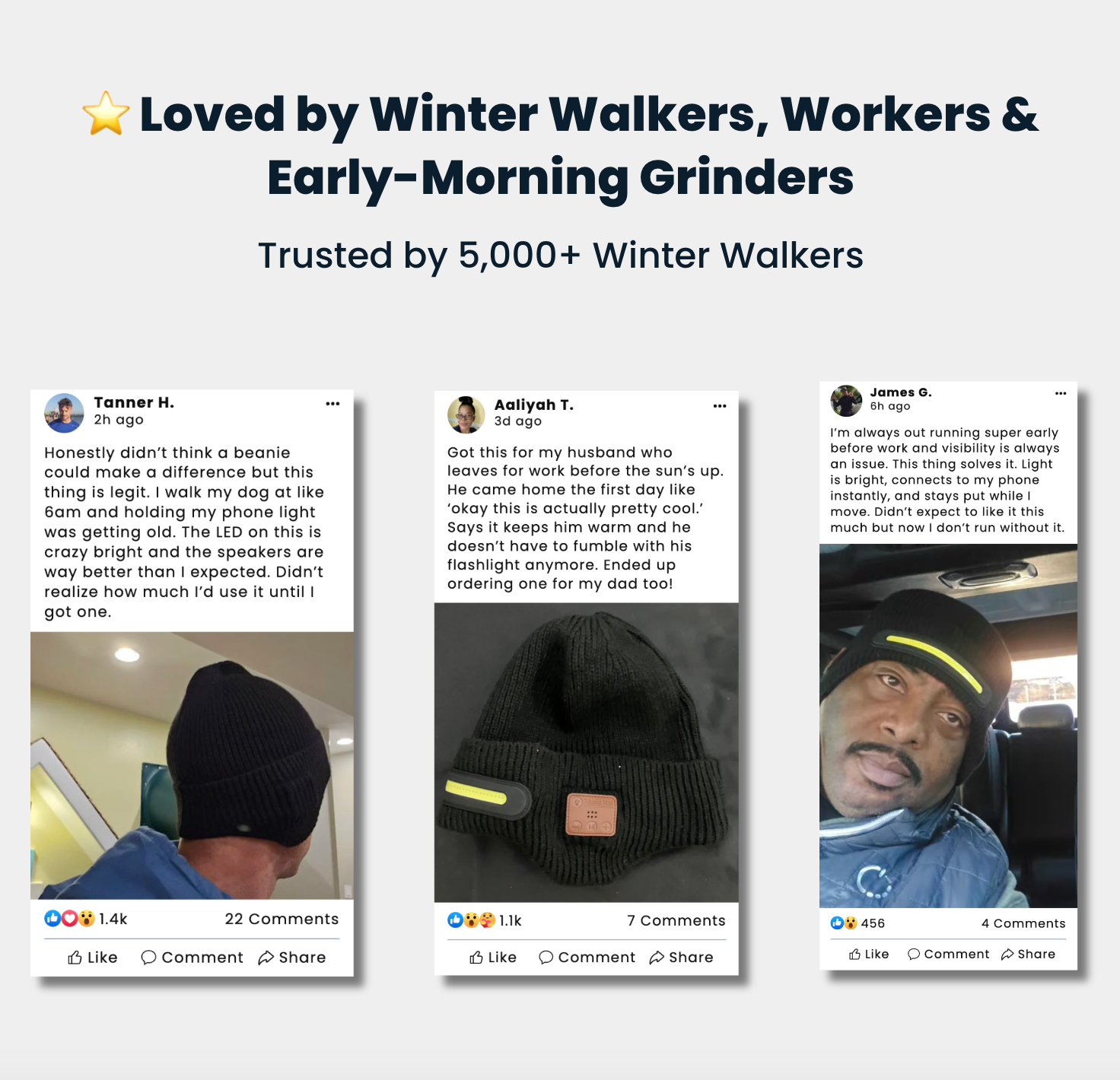 Stop juggling your phone, fighting your earbuds, and freezing your ears just to step outside. Winter doesn’t have to slow you down or make everyday tasks harder than they should be. ARCTIQ was designed to give you light, warmth, and audio in one simple upgrade — so your routine finally feels effortless again.